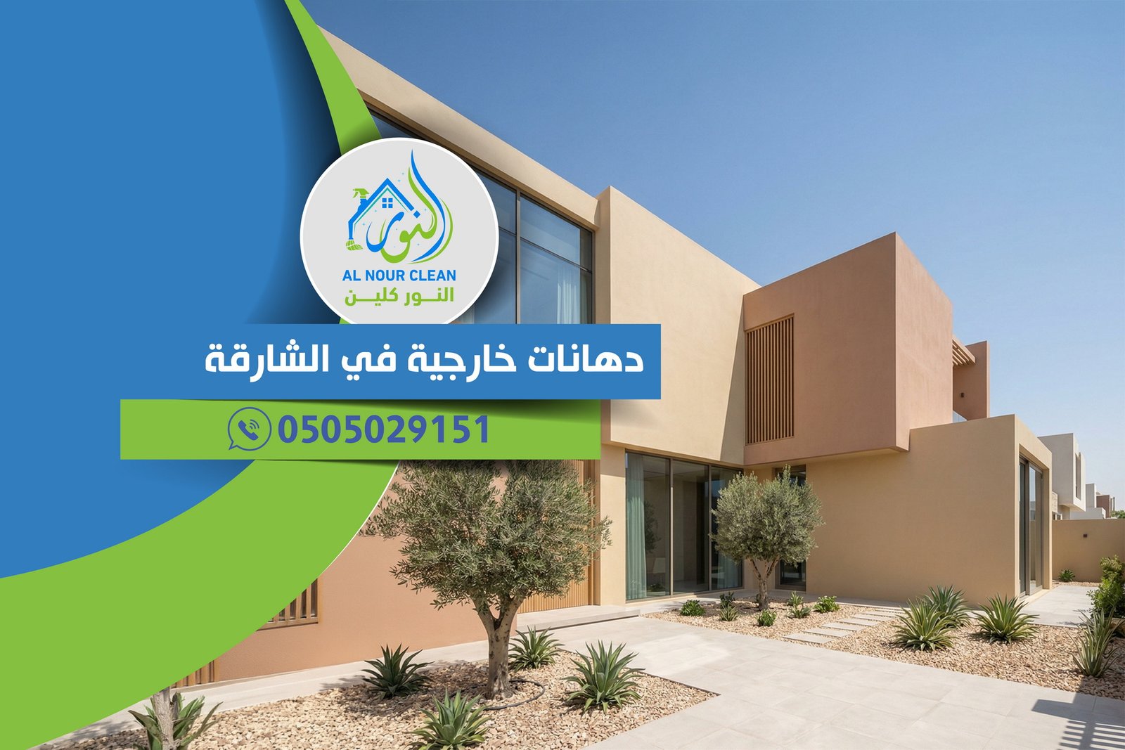 خدمة دهانات خارجية في الشارقة لحماية واجهة منزلك من الحرارة والرطوبة مع تنفيذ احترافي ومواد عالية الجودة من Al Nour Clean في جميع مناطق الشارقة.