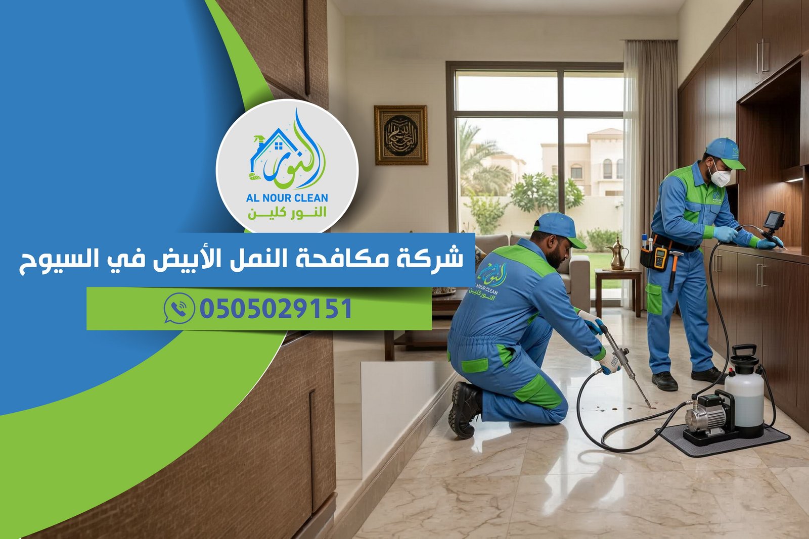 تبحث عن شركة مكافحة النمل الأبيض في السيوح؟ النور كلين تقدم خدمة مكافحة الرمة داخل المنازل والفلل في السيوح مع فريق متخصص وحجز سريع عبر واتساب 0505029151.